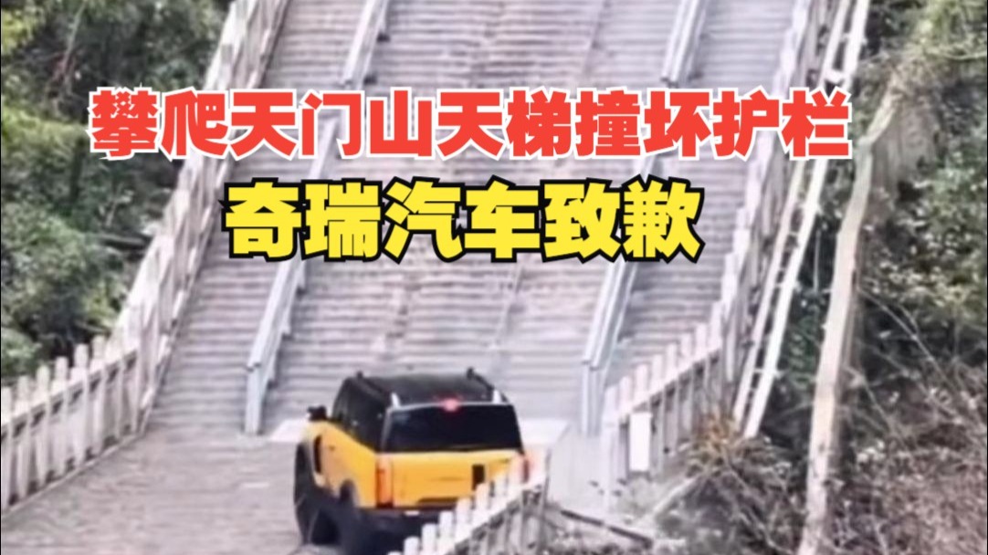 11月12日,有网传视频显示,一辆奇瑞风云汽车攀爬张家界天门山天梯过程中,溜车后撞坏护栏。