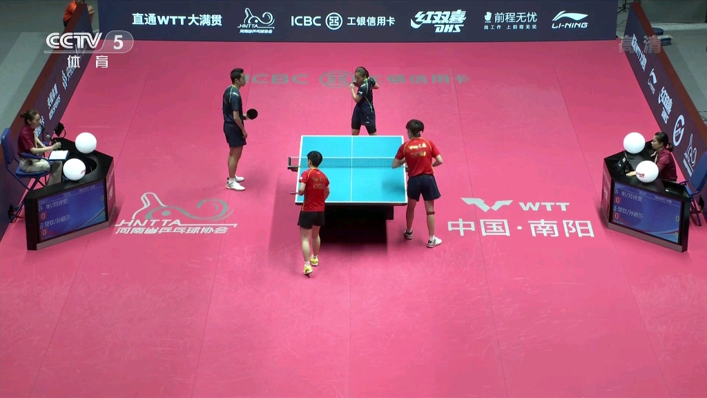 第四局竞争逐渐白热化,林高远/刘诗雯再次遭到年轻人的猛烈冲击而落后比分,随后反超不久又被追平,紧接着通过发球等优势10-6拉开差距,错失2分后稳住阵脚以11-8取胜,由此而扳平陈垣宇/蒯曼。