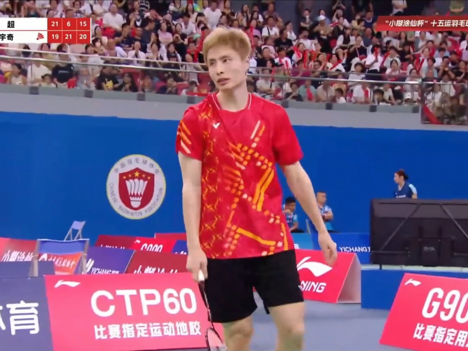 重新回到赛场之后,孙超果断的劈杀大对角,让其迅速将领先的优势扩大到了14-10,虽然石宇奇很快把比分追至15平,但又开始莫名其妙失误送分,让孙超重新取得领先,并且以21-16取得了开门红。