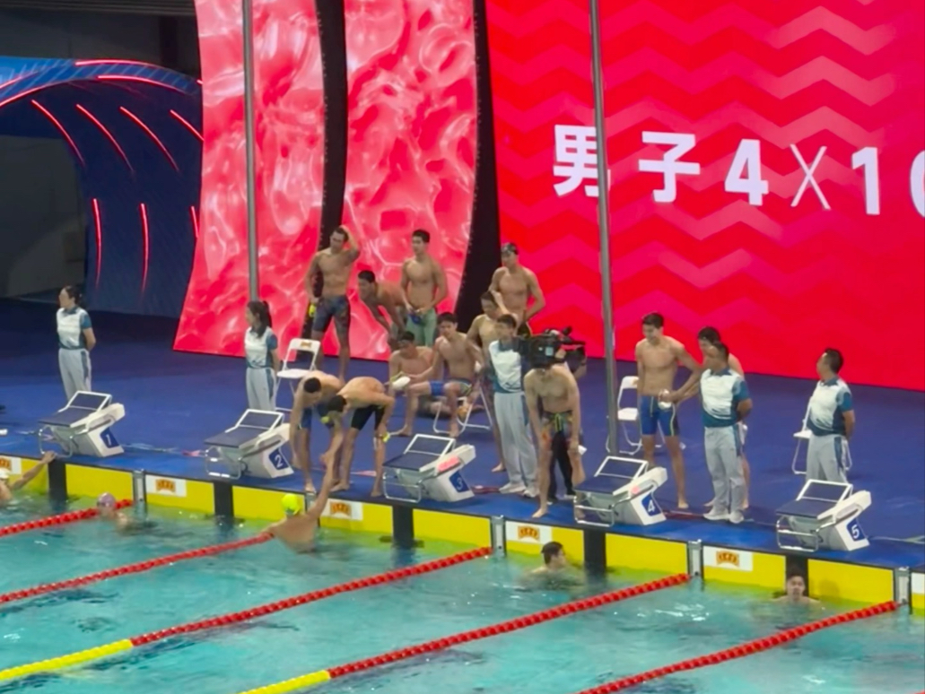 11月15日,全运会男子4×200米自由泳接力决赛:山东队以7分05秒36逆转夺得金牌;浙江队以7分06秒74获得银牌,公安体协则以7分15秒95摘得铜牌。