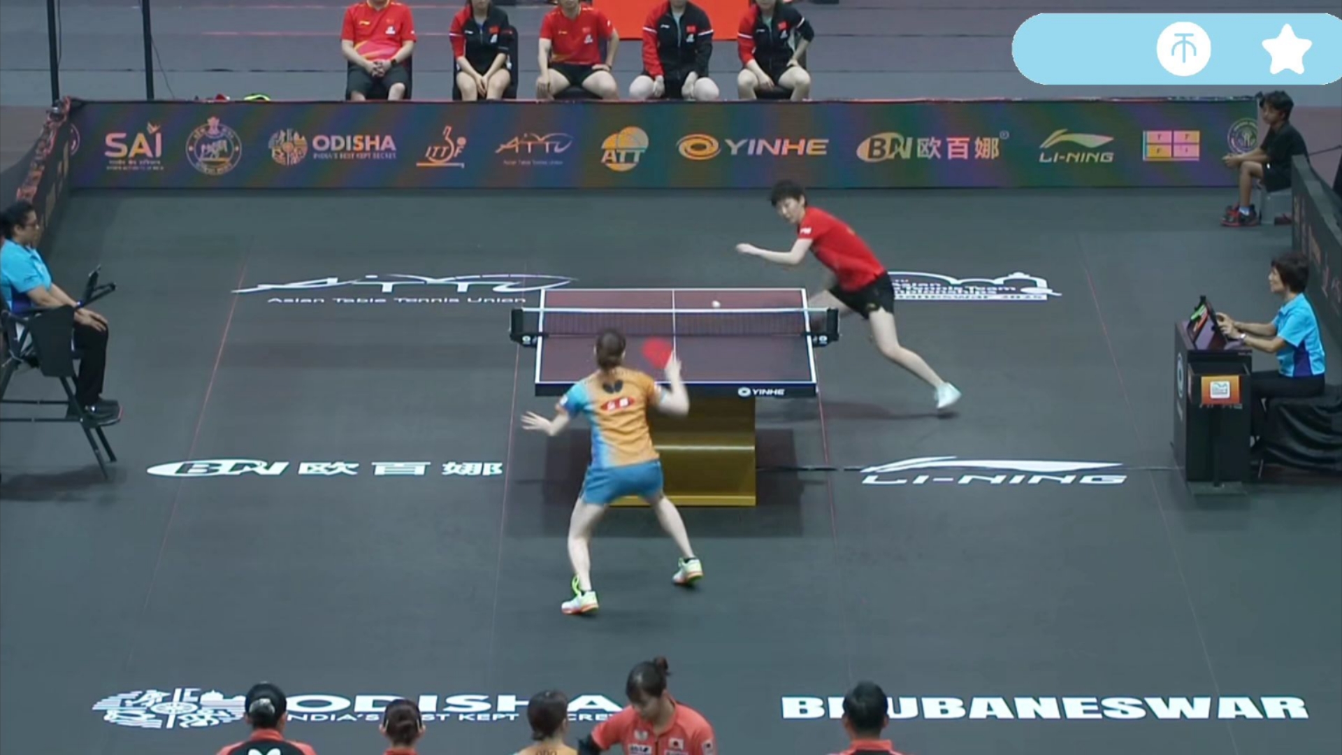 首盘战罢,中国队以1-0领先进入第二盘较量,孙颖莎即将登场对阵日本队的核心张本美和。