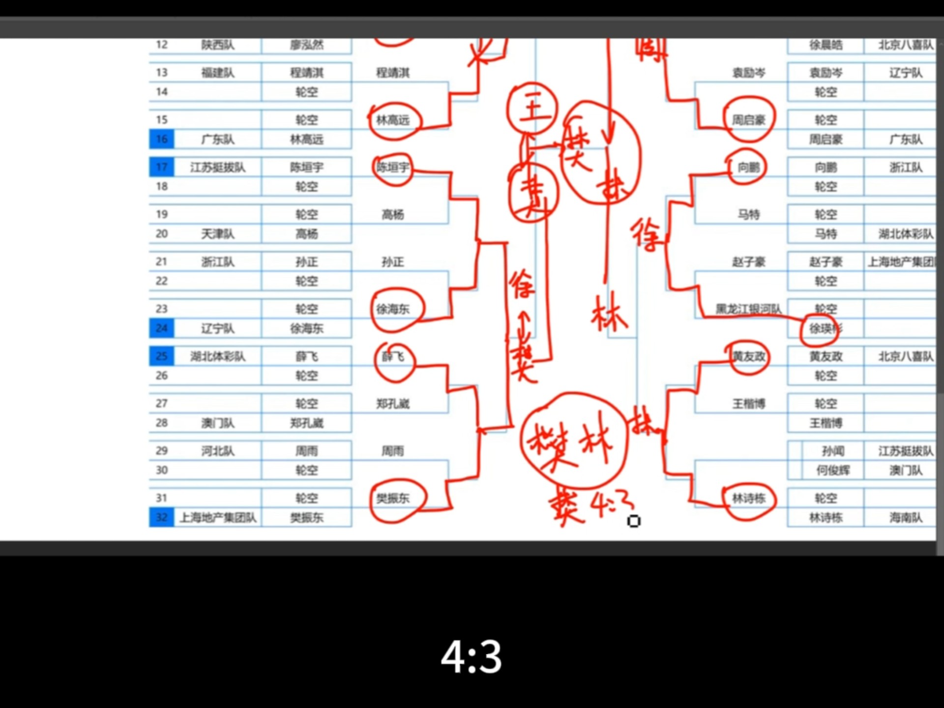 他在1/32决赛中先失一局的情况下连扳四局,特别是在第五局打出10-0的开局,最终以11-1的悬殊比分获胜。