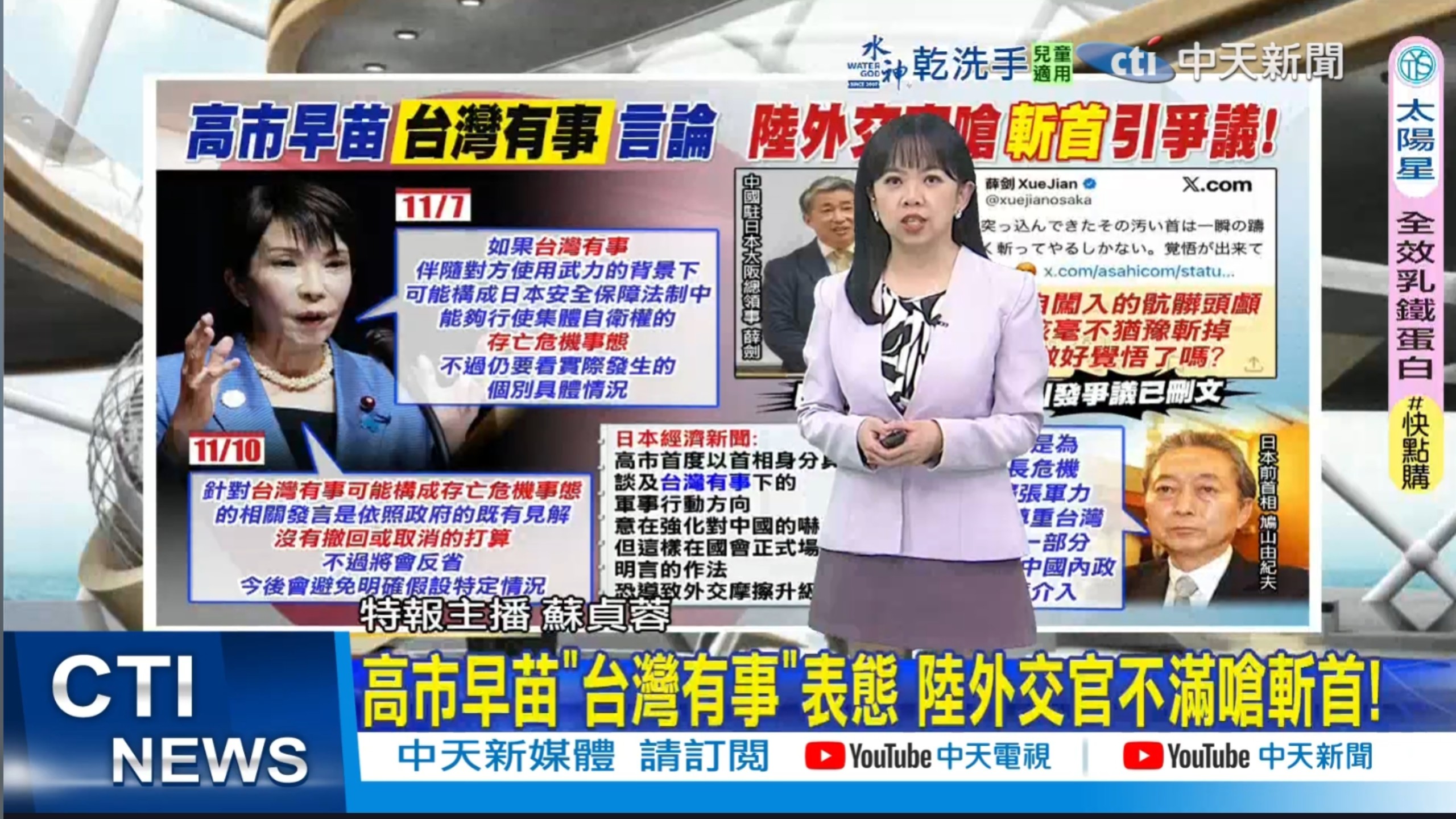 她声称台湾有事可能危及日本生存。